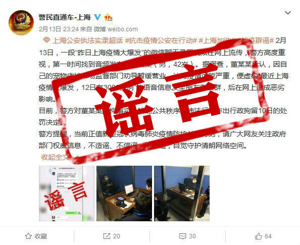 传播“上海疫情大暴发”谣言者被徐汇警方行政拘留10日
