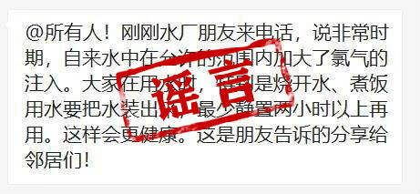 广州的自来水要提前放出并静置两小时?纯属谣言